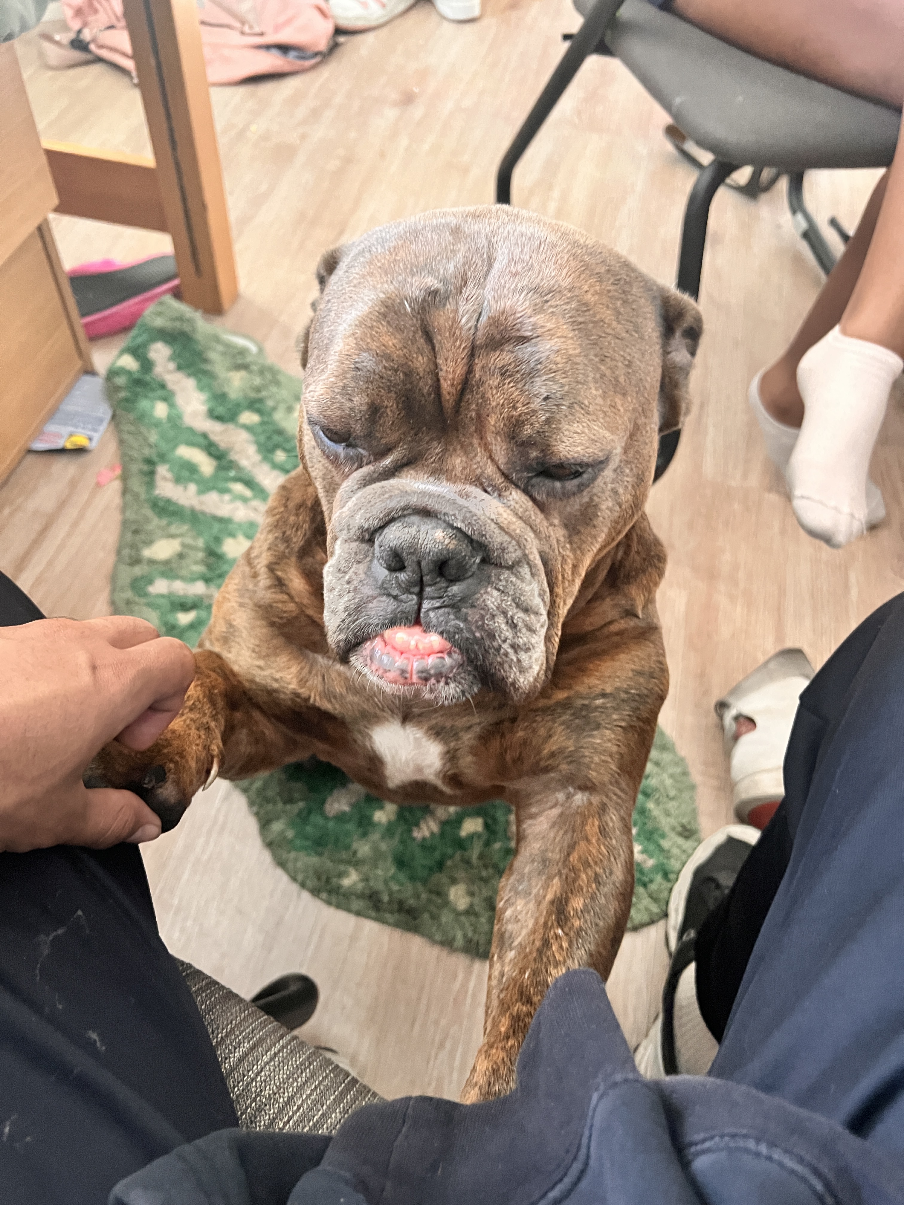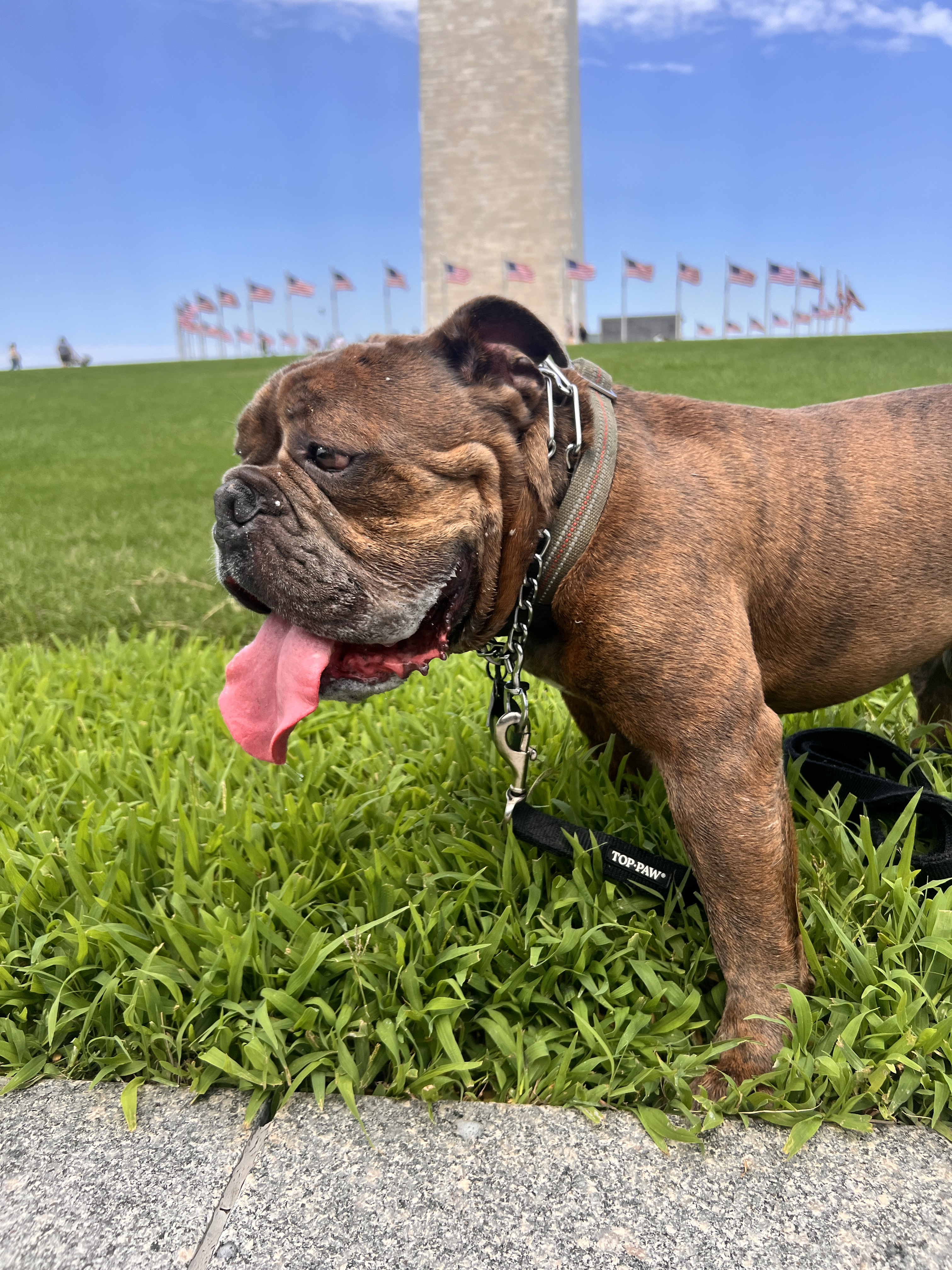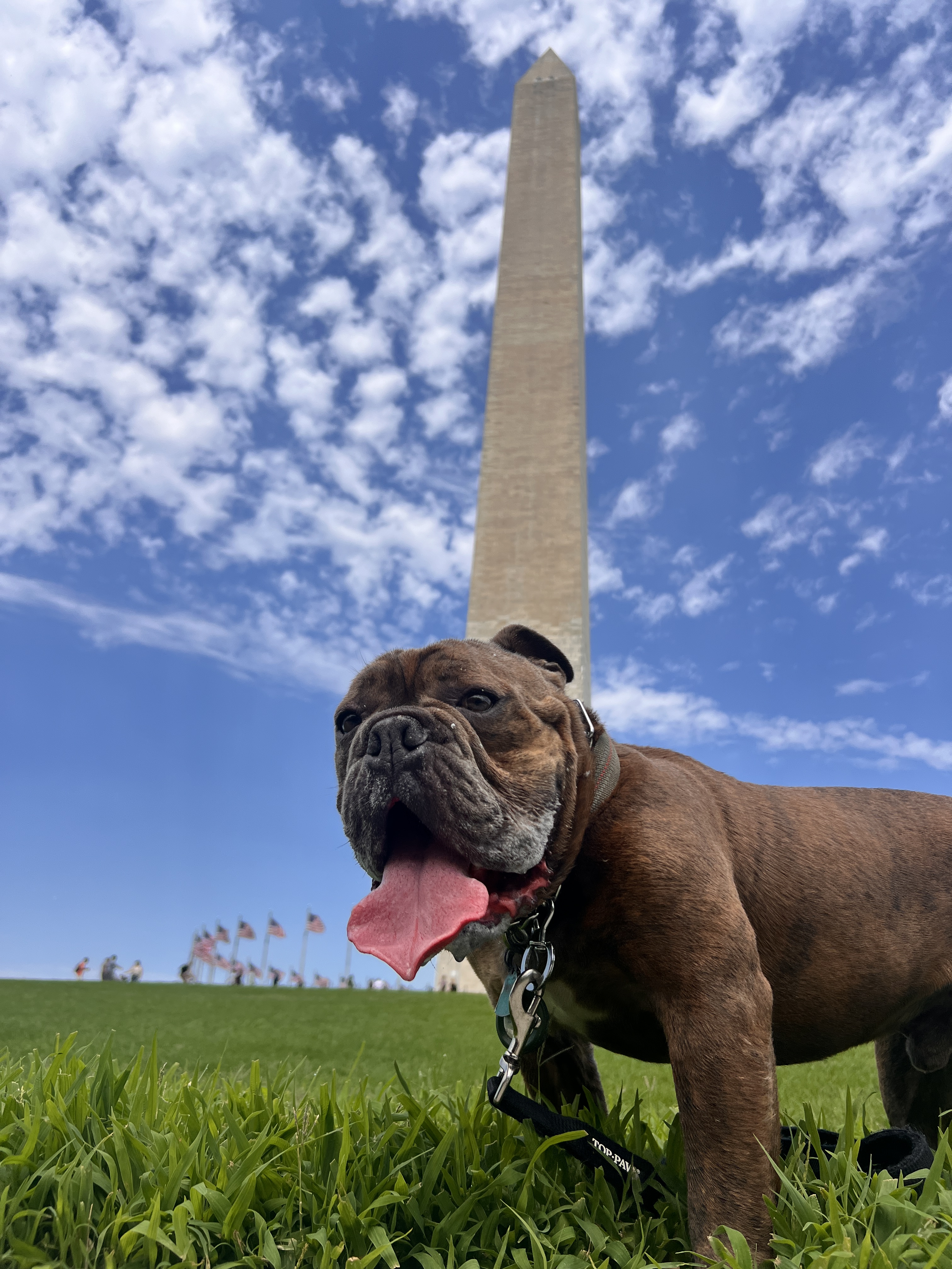 Sug is a brindle Olde English Bulldog. Sug loves hiking, long walks on the beach, going to Georgetown, and occasionally making guest appearances on AU’s campus.